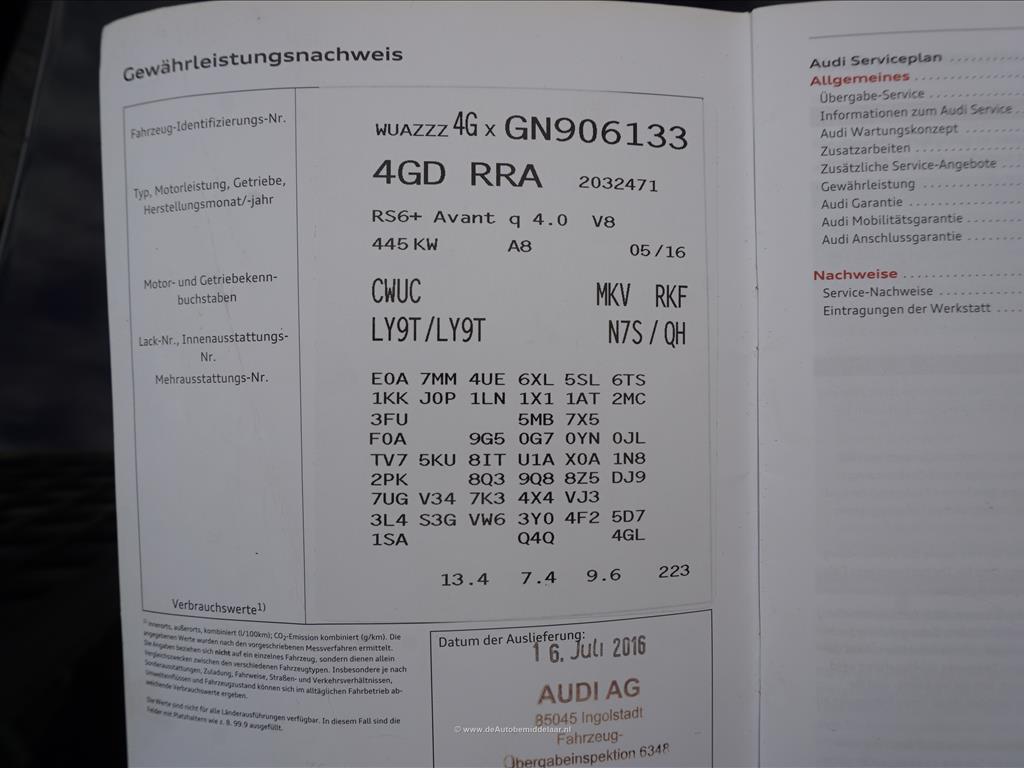 Prachtige, Full Carbon, Audi RS6 Avant 4.0 TFSI Quattro Black Optic | Panoramadak | Luchtvering | 21inch sportvelgen | 360 graden camera | Head Up Display | Alarm klasse 3 + klasse 5 | Adaptieve cruise control | Blind spot indicator | Carbon pakket | Electrisch verstelbare sportzetels met memory | 4x stoelverwarming + verwarmd stuurwiel | Boekjes compleet afgestempeld | 3x sline (Exterieur/ Interieur/ Onderstel) | Apple CarPlay/ Android Auto | Night Vision | Radar detectie systeem | Optioneel 1 jaar garantie € 3.499,- | achterbank in delen neerklapbaar, adaptief demping systeem, airco separaat achter, alarm klasse 3, Anti Blokkeer Systeem, Anti doorSlip Regeling, armsteun achter, armsteun voor, audio installatie premium, audio-navigatie full map + hard disk, bandenspanningscontrolesysteem, bestuurdersairbag, binnenspiegel automatisch dimmend, Bluetooth, boordcomputer, buitenspiegels elektr. met geheugen, buitenspiegels elektrisch inklapbaar, buitenspiegels elektrisch verstel- en verwarmbaar, carbonafwerking interieur, cruise control, dimlichten automatisch, electronic climate control, elektrisch bedienbare achterklep, elektrisch verstelbare stoel(en) met geheugen, elektrische ramen voor en achter, Elektronisch Sper Differentieel, Elektronisch Stabiliteits Programma, grootlichtassistent, hoofd airbag(s) achter, hoofd airbag(s) voor, keyless entry, LED koplampen, lendesteun(en) verstelbaar, lichtmetalen velgen 21inch, luchtvering en automatische niveauregeling, luxe lederen bekleding, multimedia-voorbereiding, passagiersairbag, regensensor, rijstrooksensor, rondomzicht camera, S Line exterieur, schakelpaddles, sportonderstel, sportstoelen, sportstuur, start/stop systeem, stuur en versnellingspook (kunst)leder, stuur multifunctioneel, stuurbekrachtiging snelheidsafhankelijk, stuurkolom elektrisch verstelbaar, variabele stuuroverbrenging, verkeersbord detectie, voorstoelen verwarmd, zij airbag(s) achter, zij airbag(s) voor, achterbank verwarmd, buitenspiegel(s) automatisch dimmend, DAB, dakrails, elektrisch glazen panorama-dak, extra getint glas achter, head-up display, metaalkleur, parkeer assistent, stuur verwarmd, cruise control adaptief met Stop&Go, dodehoek detectie, Etc.